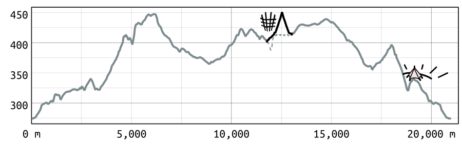 Die volle Halbmarathondistanz (21,5 km). Die ersten lockeren Kilometer führen dich durch die Tal-Kulisse von Oberschwarzach nach Handthal, vorbei am Steigerwaldzentrum auf einigermaßen ebener Strecke. Jetzt bringt dich der Anstieg hoch zum Magdalenenkreuz so richtig auf Betriebstemperatur. Oben angekommen erwarten dich Waldwege und kleine Trails bis zum Baumwipfelpfad . Dort läufst du über die Stege auf den Aussichtsturm. Nach der Verpflegungsstation geht es weiter durch den Wald. Hier kannst du bergab kurz Kraft tanken, denn zwei Steigungen hast du noch vor dir. Die letzte hoch zur Kapelle (zum „Hörnle“) hat es in sich. Einmal den Ausblick genießen, dann läufst du locker bis zum Ziel am Sportplatz.